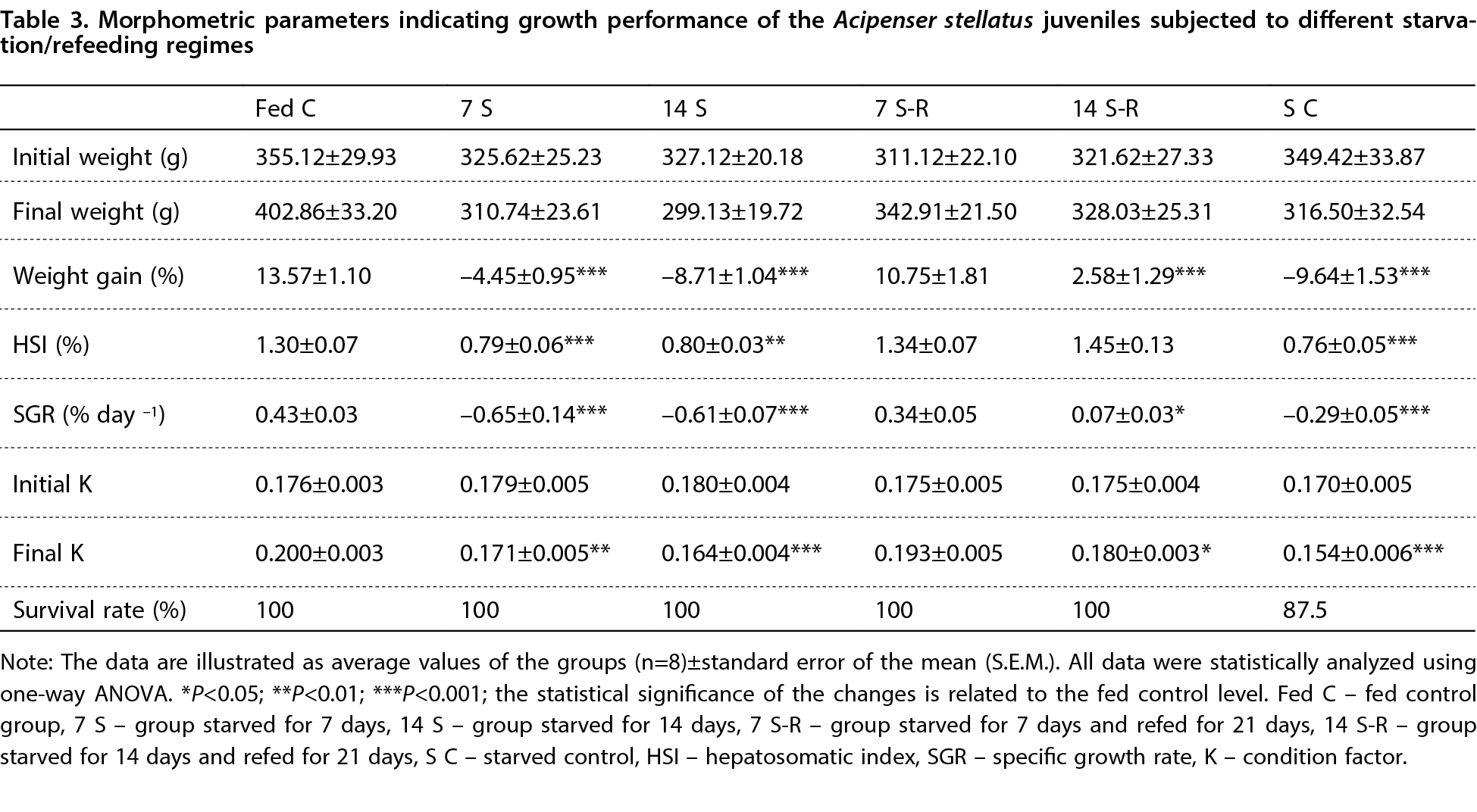 Key words: Acipenser stellatus; growth performance; oxidative stress; hsp gene expression; starvation/refeeding regime.